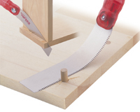 刃にアサリがないことで、木材との摩擦抵抗が大きくなりますが、木材の切り口に傷が付きにくくなります。埋め木の切断などに使用します。 |