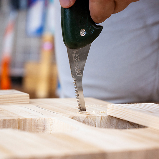 挽き廻しのこぎりです。直線・曲線が自由自在に切れます。一般木材・合板・集成材等を自由曲線や円等に切断するのに最適です。刃渡りが短い方が刃の幅が小さいため小回りがききます。