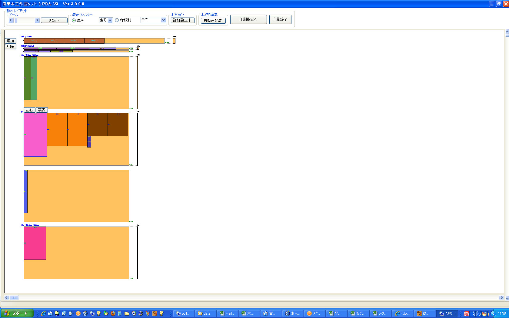 木端と木端を接着剤でくっつけて接合(いも矧ぎ)し、幅広の材料をつくる治具です。